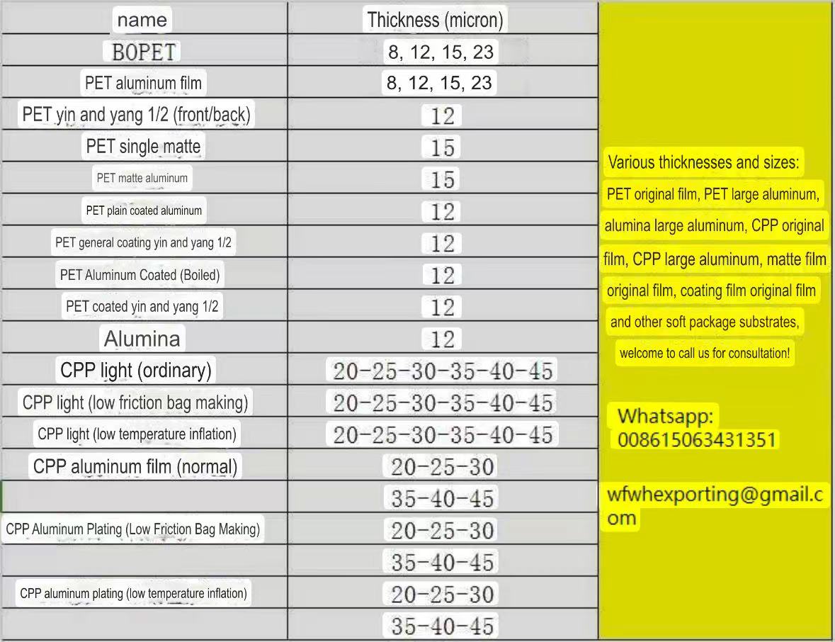 Boiled PET coating film,PET glossy film aluminized film, coated film matte film alumina food and medicine packaging composite film